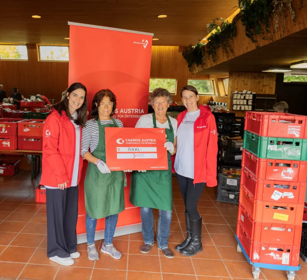 Im August setzten die Mitarbeiter des Casino Bregenz ein Zeichen der Solidarität und unterstützten die Initiative „Tischlein Deck Dich“. Im Rahmen der Aktion „Unser Einsatz für Österreich“ halfen wöchentlich Casino-Teams aus allen Bereichen, angefangen vom Management bis hin zu Marketing und Croupiers, ehrenamtlich bei der Essensausgabe in Bregenz mit.